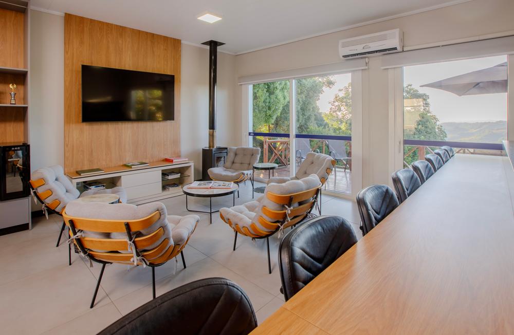 A sala, exclusiva para sócios e convidados, pode usar para reuniões e pequenas conferências. Equipada com data-show, ar-condicionado e mesa para 12 pessoas.